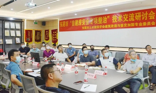 ?為加快推進東莞市自建房安全專項整治工作開展,交流探討目前安全專項整治遇到的技術問題,以及結合自建房安全專項整治督導組給出的意見對下一步工作進行部署。7月20日下午,由東莞市住房和城鄉建設局指導、東莞市土木建筑學會主辦、東莞市土木建筑學會建筑改造與鑒定加固專業委員會承辦的關于“自建房安全專項整治”技術交流研討會在廣東中青建筑科技有限公司會議室召開。東莞市住房和城鄉建設局四級調研員郭志川科長、二級主任科員莫勝強、自建房安全專項整治督導組成員、東莞市土木建筑學會建筑改造與鑒定加固專業委員會專家委員和學會鄭金伙秘書長等參加了此次交流會。會議由東莞市土木建筑學會建筑改造與鑒定加固專業委員會主任委員楊孝主持。