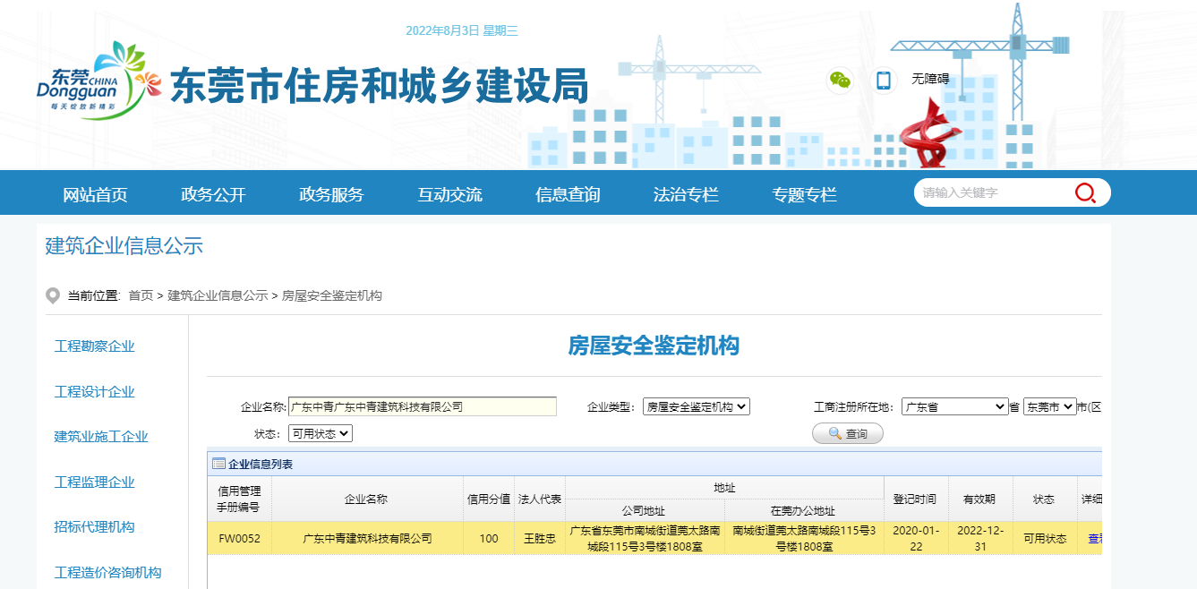 所以想要注冊房屋安全鑒定公司需要具備很多的鑒定師,而且人員必須要滿足企業機構的要求,同時還要有足夠的檢測鑒定經驗,能夠解決各種建筑物疑難雜癥,東莞市房屋安全鑒定公司具體單位,可以到東莞市住建局官網查詢或者參考以下單位: