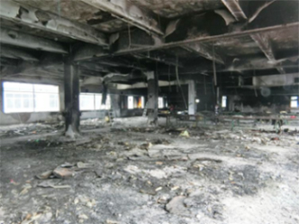 東莞譽(yù)銘新工業(yè)廠房屋安全鑒定項(xiàng)目位于東莞市塘廈鎮(zhèn),2014年委托方委托我院對該房屋進(jìn)行火災(zāi)后結(jié)構(gòu)安全性能鑒定。經(jīng)核查,該廠房為鋼筋混凝土框架結(jié)構(gòu),建筑高度為11.4m,因過火時(shí)間長,導(dǎo)致該廠房受到破損,外墻開裂等情況。其大部分均已被熏黑。過火區(qū)域的主體構(gòu)件受到不同程度的損壞,部分柱構(gòu)件呈粉紅色,有批蕩大面積脫落、保護(hù)層砼剝落現(xiàn)象,板面批蕩有不同程度的起鼓、開裂、脫離及粉碎現(xiàn)象,并抽取部份混凝土構(gòu)件芯樣送專業(yè)檢測單位檢測混凝土強(qiáng)度,以及輔以計(jì)算機(jī)建模計(jì)算。相關(guān)技術(shù)人員根據(jù)現(xiàn)場勘查資料及計(jì)算機(jī)數(shù)據(jù)以及根據(jù)《火災(zāi)后建筑結(jié)構(gòu)鑒定標(biāo)準(zhǔn)》CECS 252:2009的要求對該受損房屋進(jìn)行了安全評估,并編寫了火災(zāi)后房屋安全鑒定報(bào)告書。