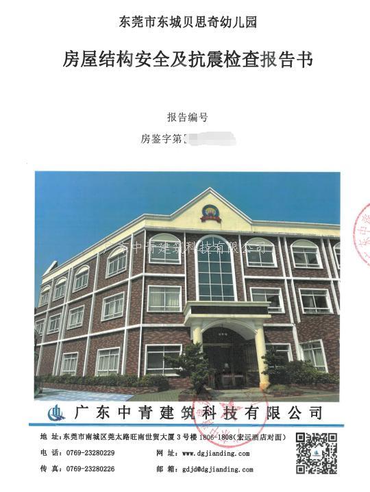 該項目位于東莞市東城區,為一棟四層框架結構,建筑面積約4000平方米,主要使用用途為教學樓,因使用要求對結構安全及抗震性能進行鑒定。